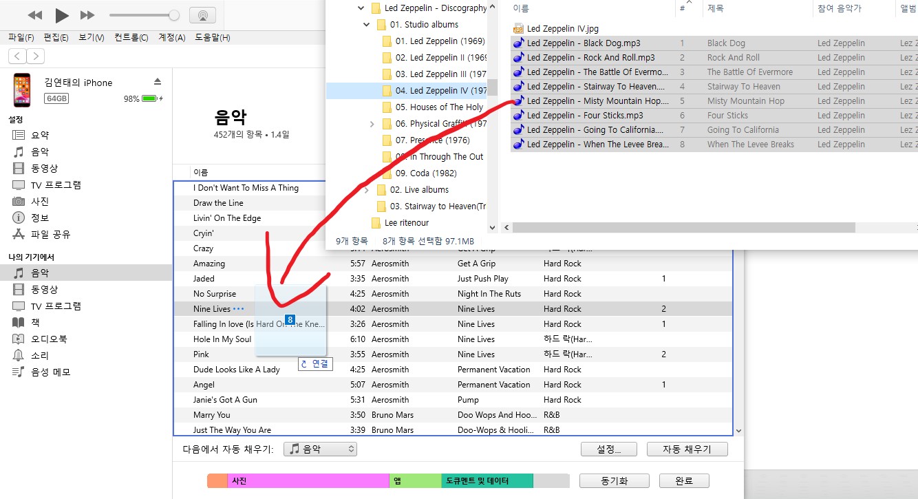 아이튠즈로 드래그 앤 드롭 해주시면