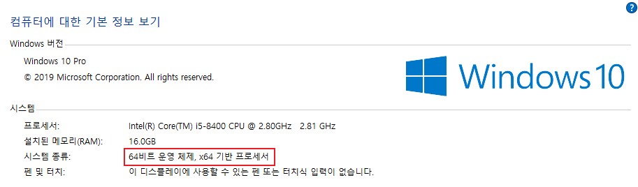 속성을 눌러주시면 단단하게 시스템 종류를 아래의 그림과 같이 확인 하실 수 있습니다.