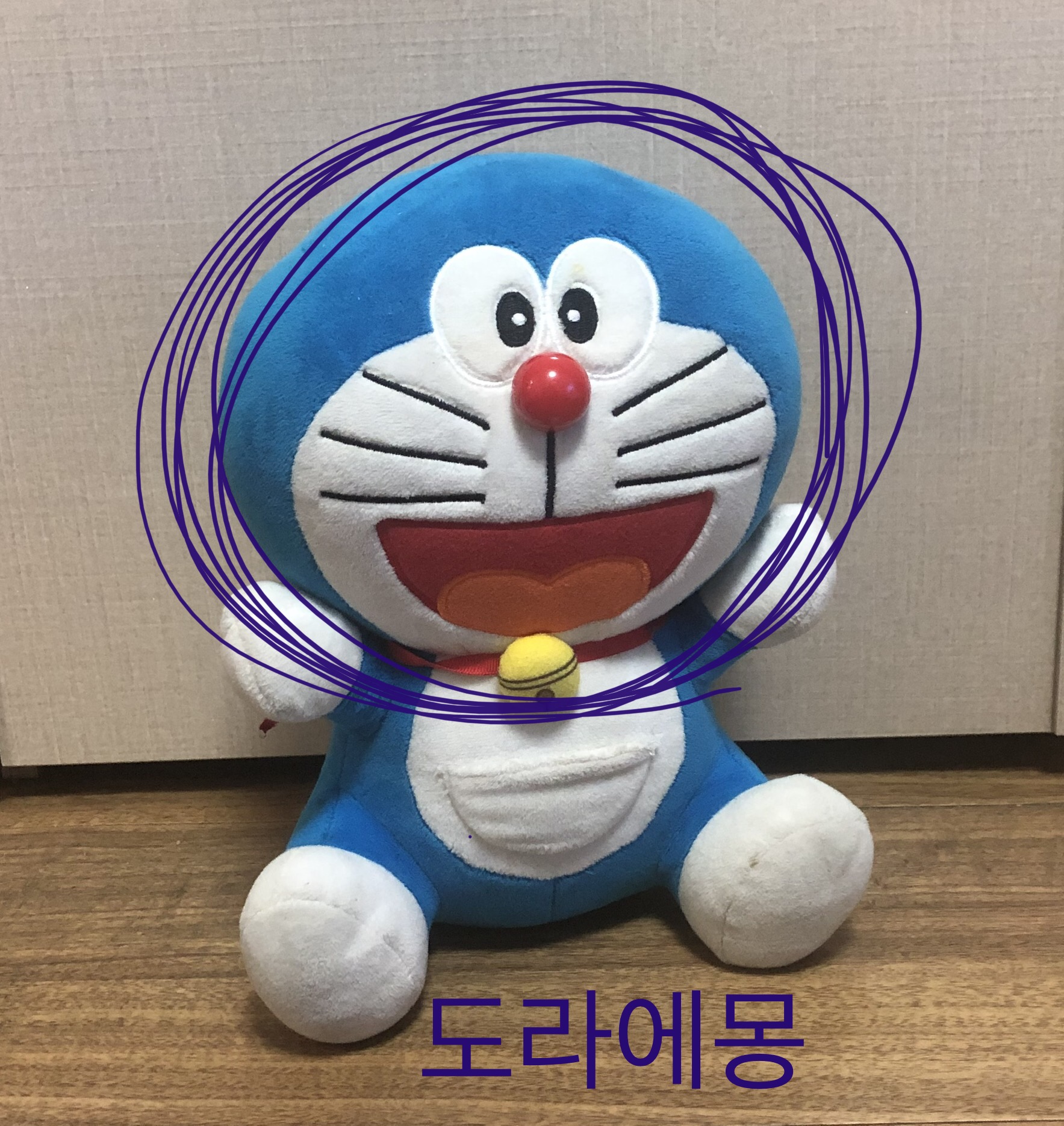 도라에몽 얼굴에 동그라미를 그려보았습니다.