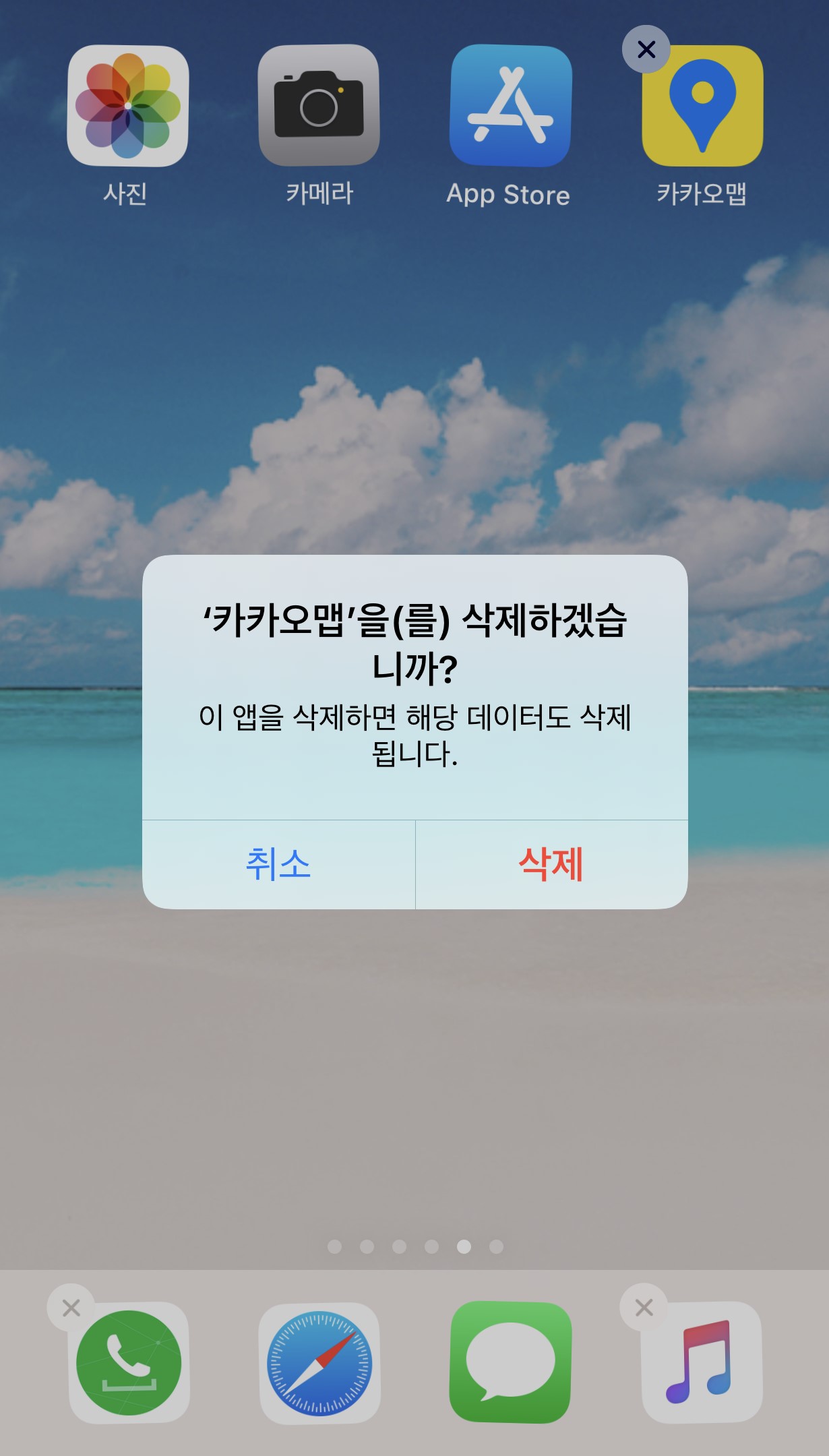 그 X표시를 누르면 정말로 앱을 삭제하겠습니까?
