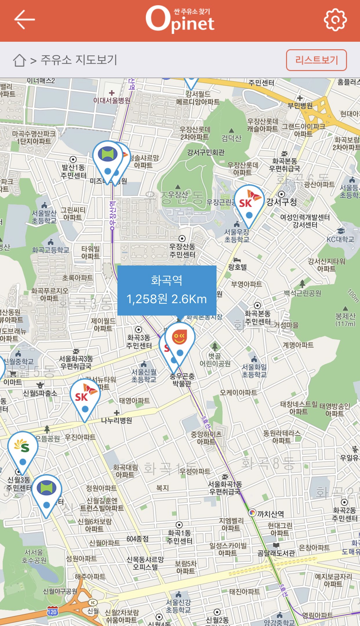 저장을 누르면 오른쪽 사진과 같이 주유소 리스트가 뜹니다.