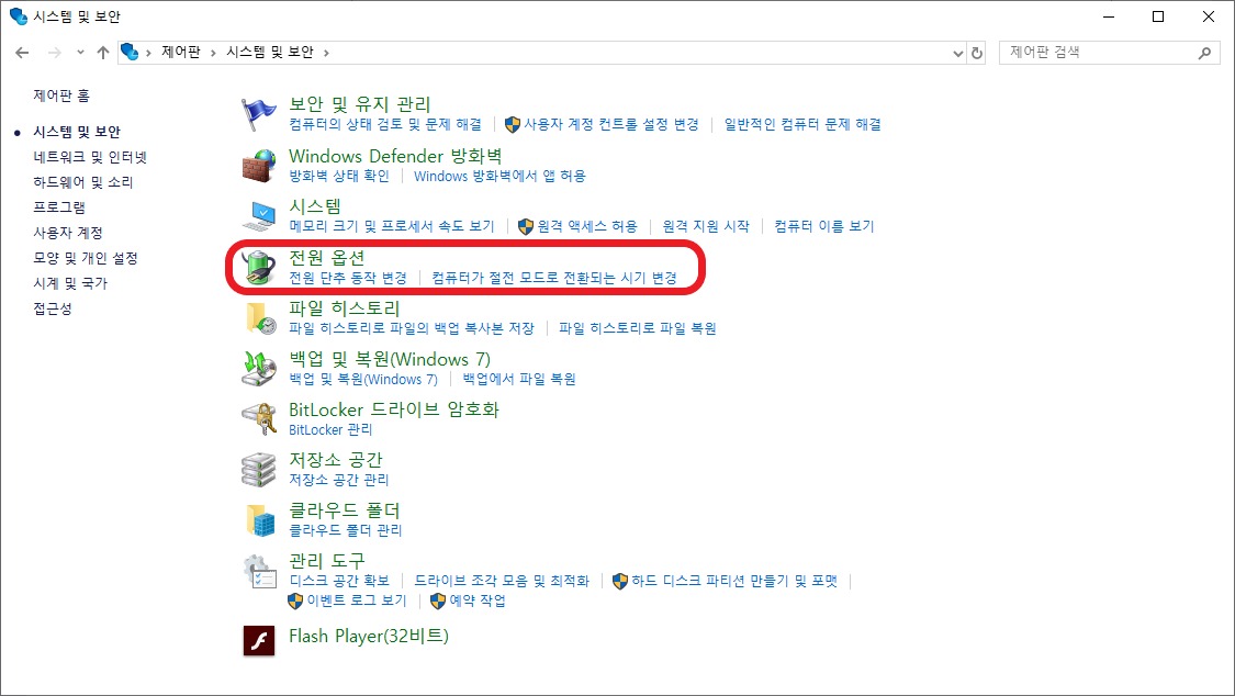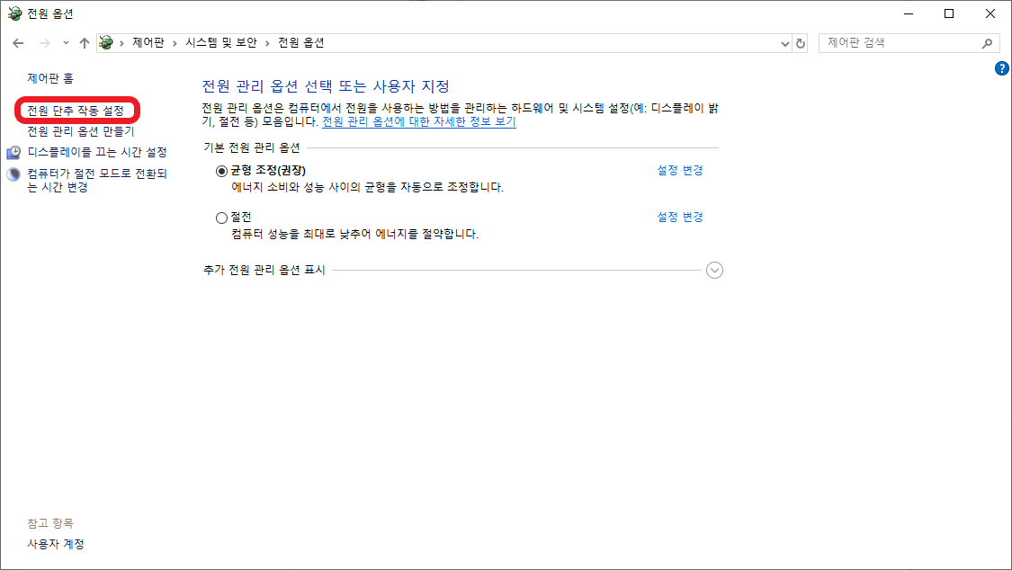 전원 옵션을 선택합니다.