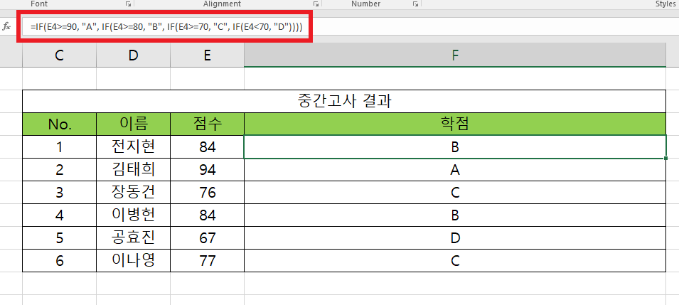 이번에는 조금 더 세분화해서 등급으로 나누는 IF 함수 예제를 다루겠습니다.