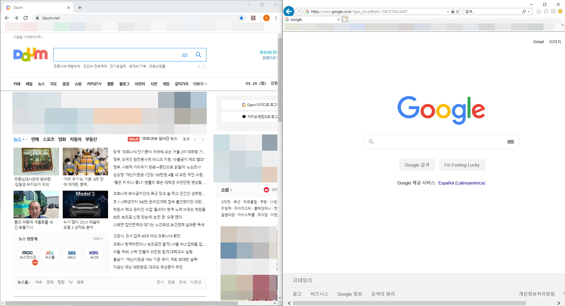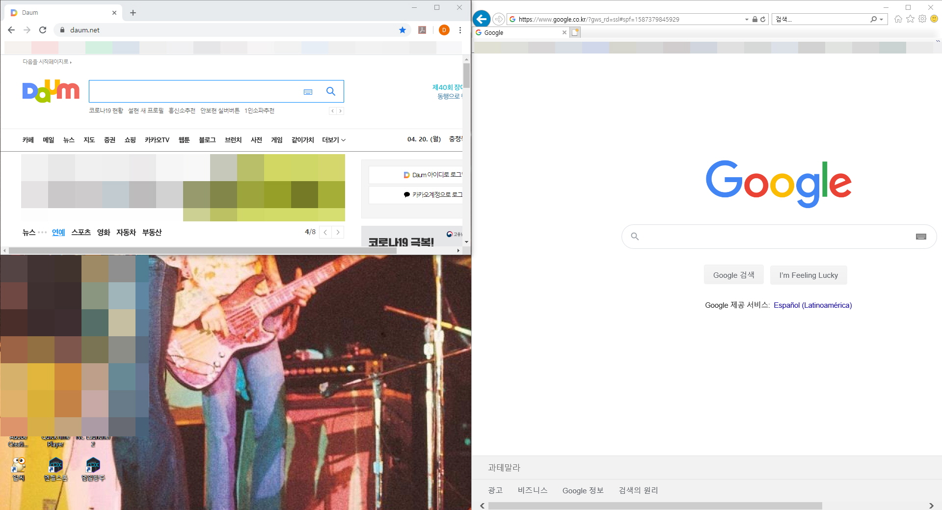 그리고 인터넷 익스플로러(구글 홈페이지)를 실행해 놓고 윈도우키 + →(오른쪽 방향키) 키를 누르면