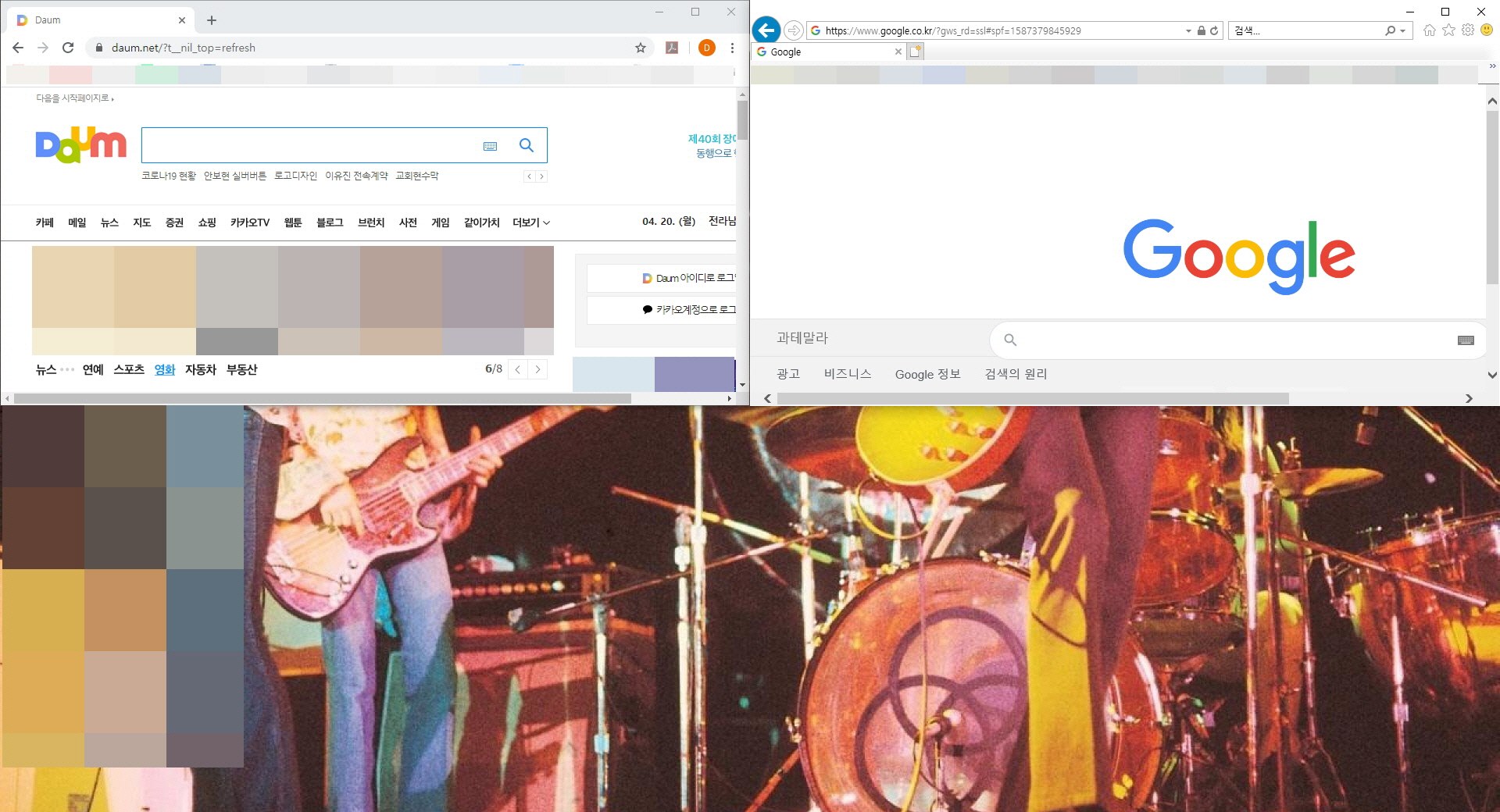크롬이 반 토막 나서 반은 배경화면이 보이게 됩니다.