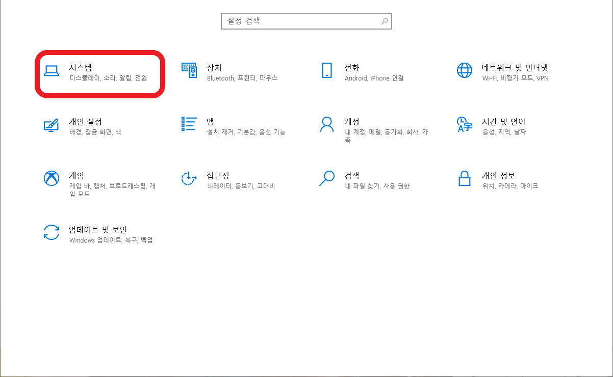 먼저 윈도우 설정으로 들어가서 시스템으로 들어갑니다.