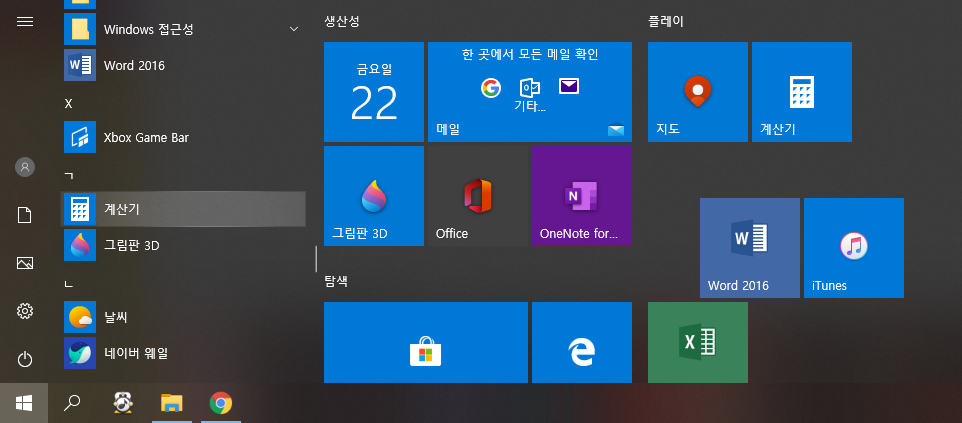 윈도우 버튼을 누르고 알파벳 다 끝나고 'ㄱ'이 나오면 계산기가 뜹니다.