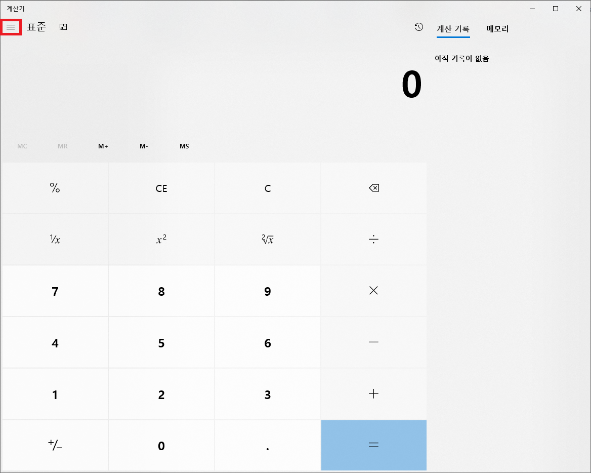위의 사진과 같이 계산기가 나왔다면 왼쪽 상단에 있는 아이콘을 눌러 줍니다.