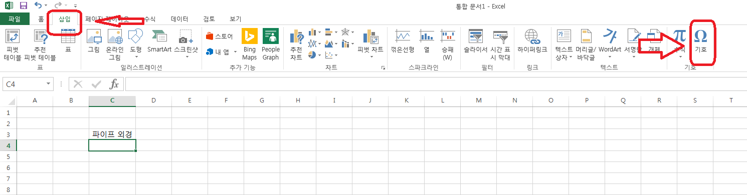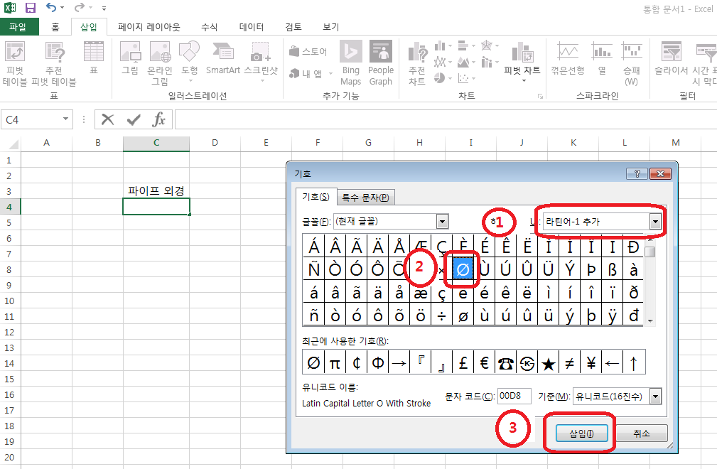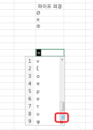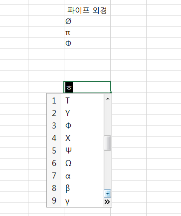 회사에서 excel로 업무를 하다 보면 갑자기 파이(Ø, π)를 입력하야 하는 순간이 종종 있지요.