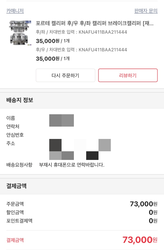 이번엔 캘리퍼라는 녀석만 그리고 뒷쪽만 교체를 했는데 말이죠.