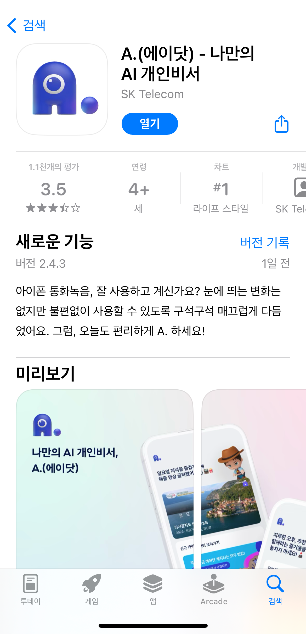 SK 텔레콤에서 개발한 AI 개인비서 앱이죠.