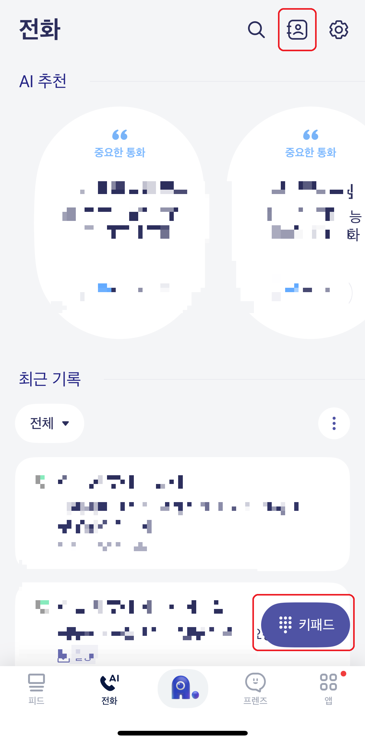 아랫쪽 두번째 AI전화라고 보이시죠?