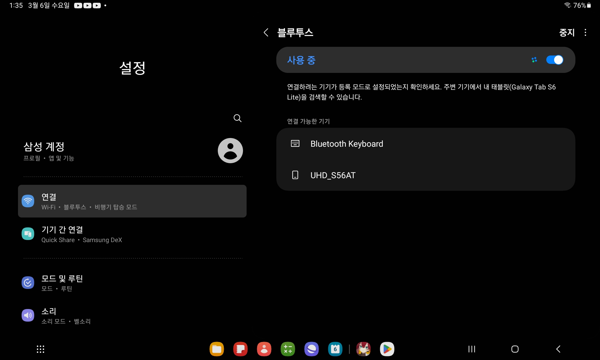 그리고 태블릿에 나오는 블루투스 키보드를 페어링해주면 끝납니다.