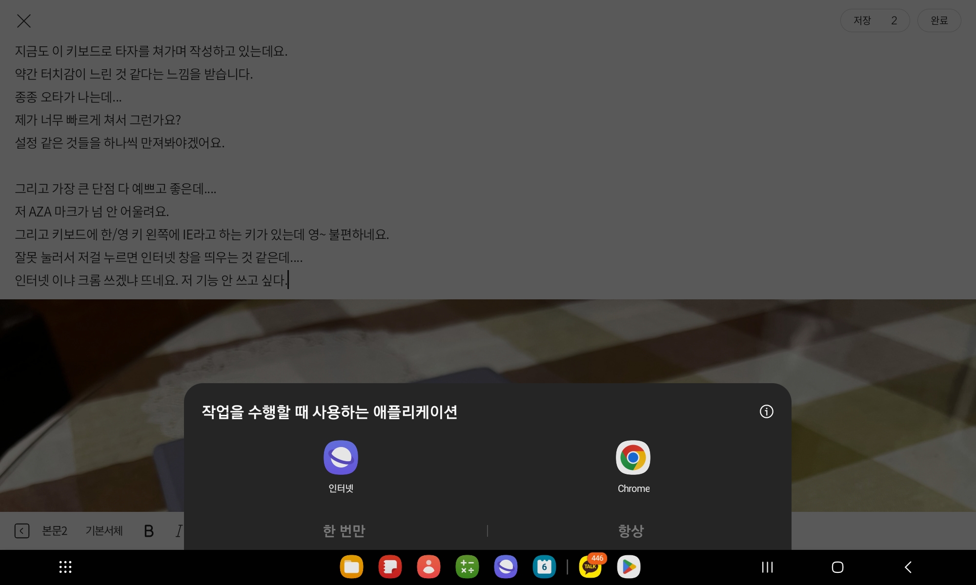 인터넷 이냐 크롬 쓰겠냐 뜨네요. 저 기능 안 쓰고 싶다.