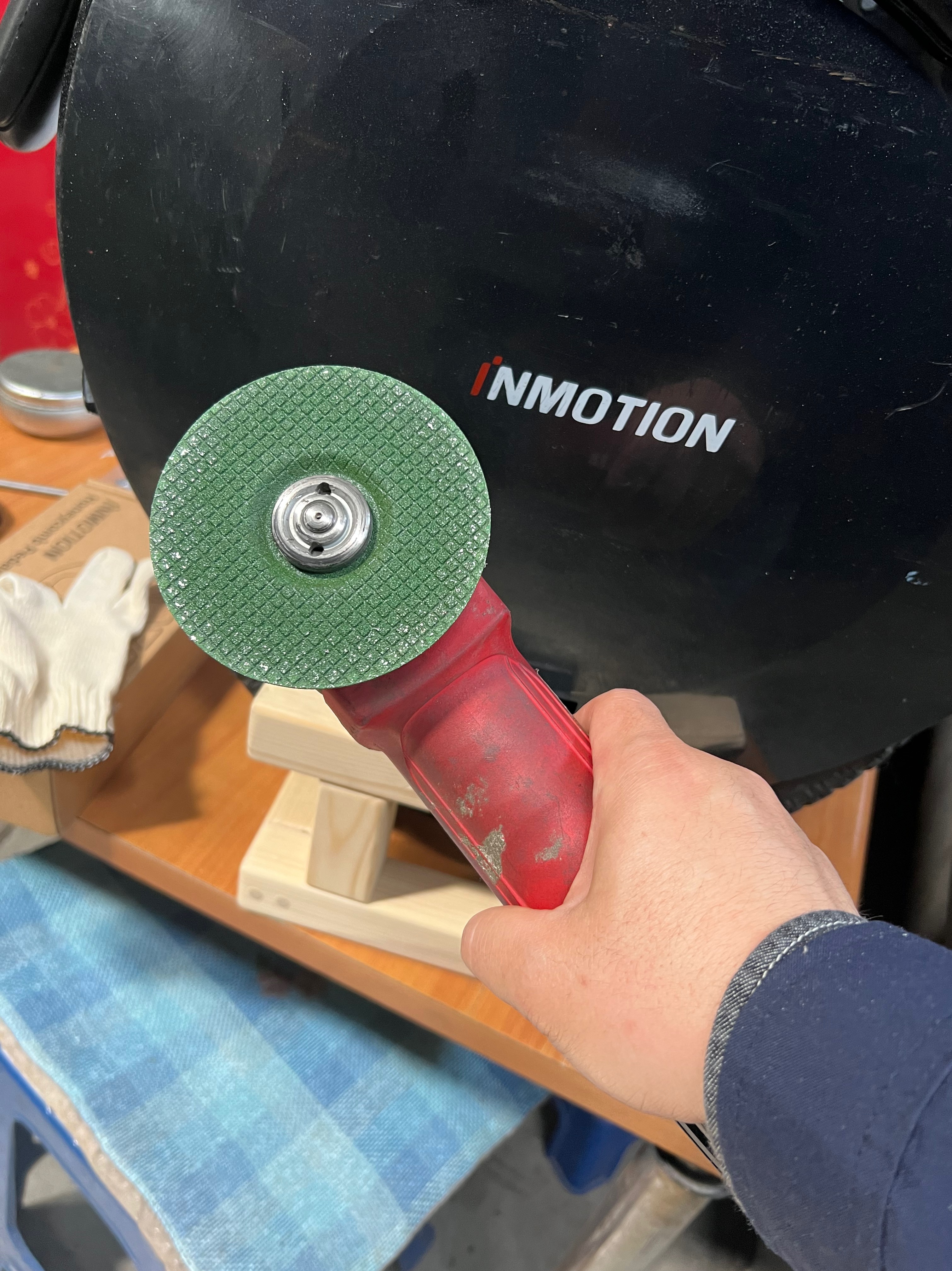 휠과 거치대를 회사로 가져와 점심시간을 이용해 작업을 시작했습니다.