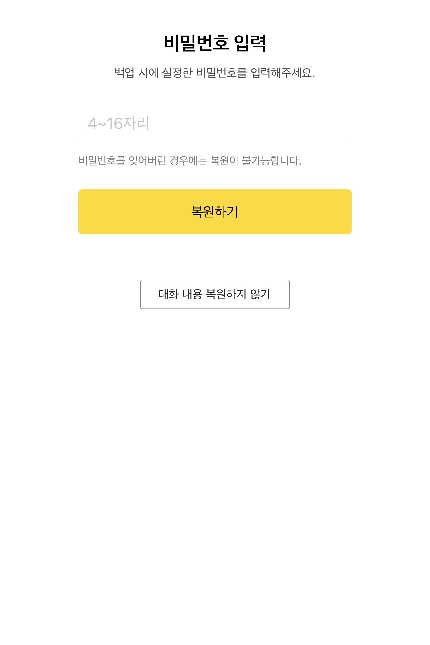 아까전에 설정해 놓았던 비밀번호를 눌러서 복원을 하시면 됩니다.