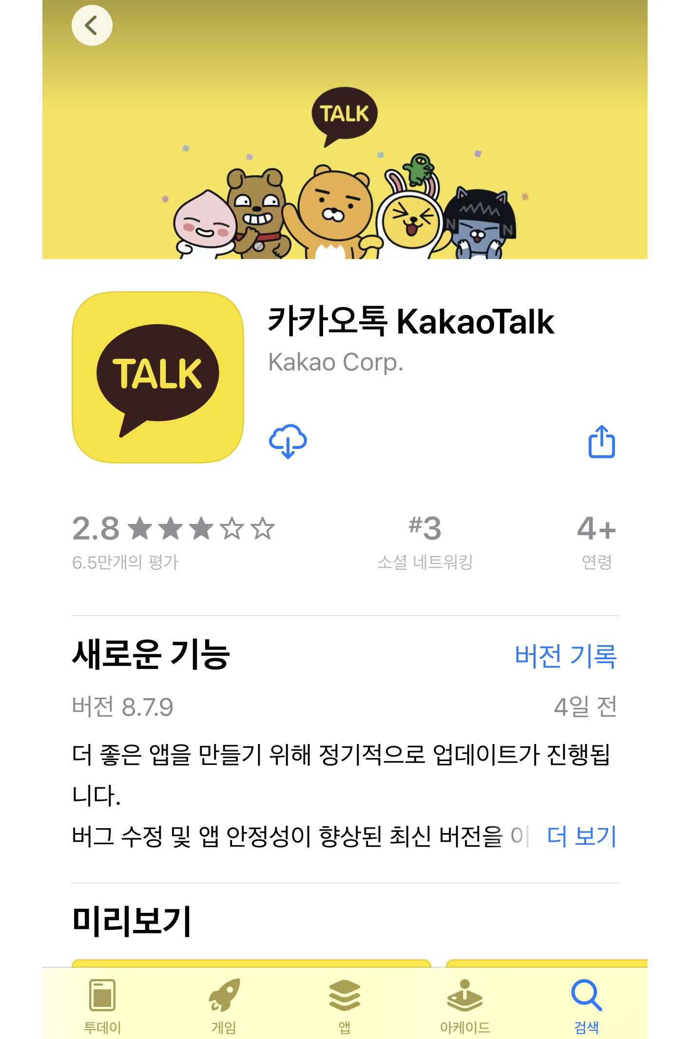 자 이제 카카오톡을 지우고 새로 설치를 하시면 됩니다.